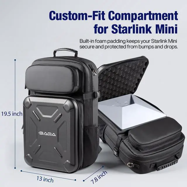 PROTECT YOUR STARLINK MINI DASH: Worried your Starlink Mini dash might get bumped or damaged during travel? The DAQA Starlink Mini Backpack features a dedicated compartment with high-quality padded foam, giving your Starlink Mini absolute protection and peace of mind wherever you go.