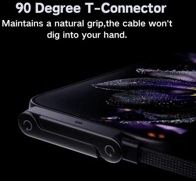 T-ConnectorThe 90° T-connector keeps the cable comfortably away from your hand, maintaining a natural grip. The cable won't dig into your hand or hinder your movements when gaming, browsing the web, or watching videos.