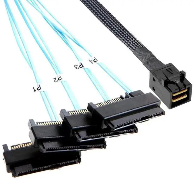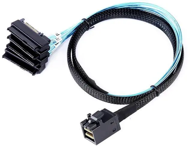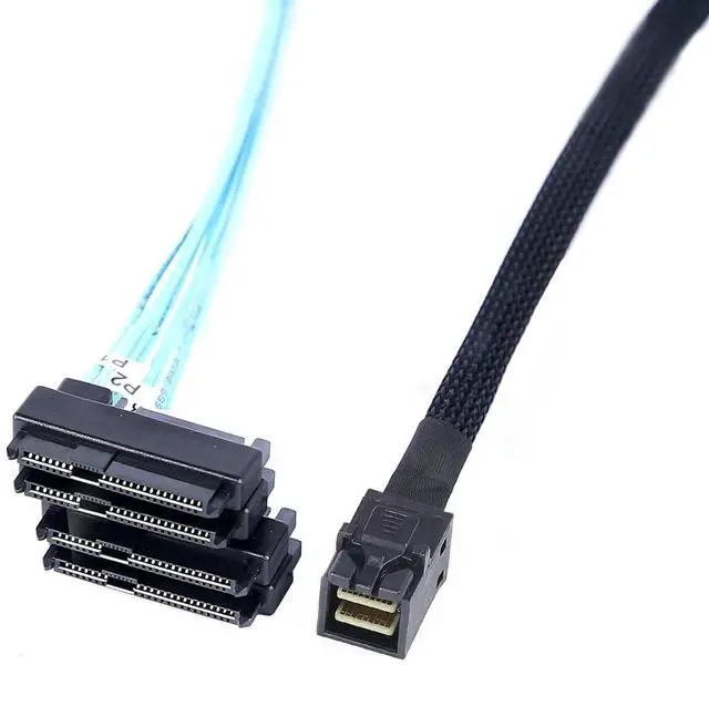 SFF-8643 sas breakout cable build with thin sas cable and tape/braid weaved design, length choice mini sas to sas with power short/sff 8643 8482 0.5m and long sas breakout cable/8643 4sas 1m, braided sff-8643 to 4 sas cable easy to route after installation, the sff-8643 to sas cable is good choice for DIY and professional installers