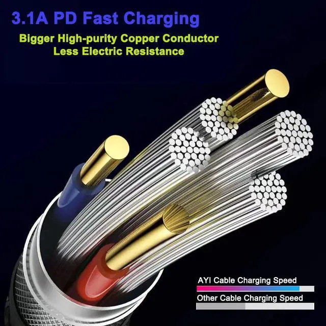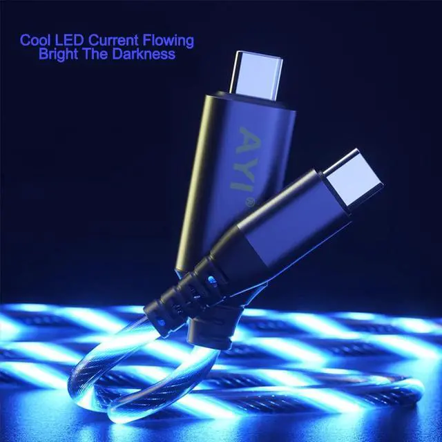 1. Nice Visible Current Flowing Cable: Charging cable shows beautiful blue flowing LED light, bring the most comfortable visual experience to you. Blue Streaming light stays on will shine your room or car, this cable can be used as a night light.