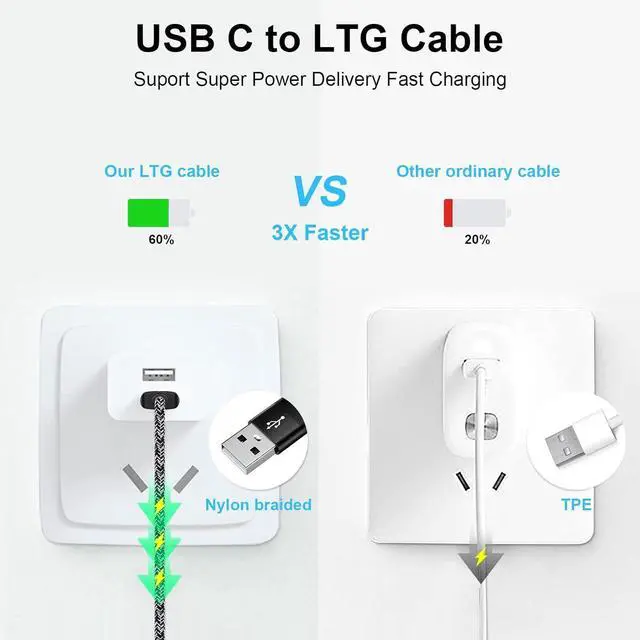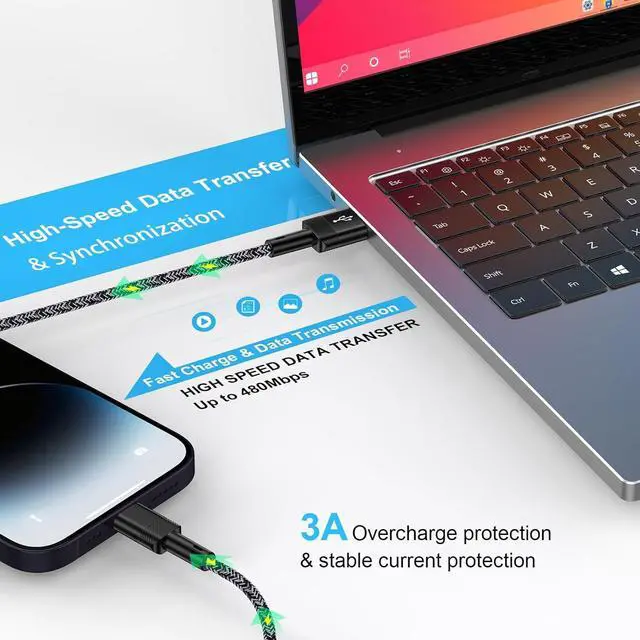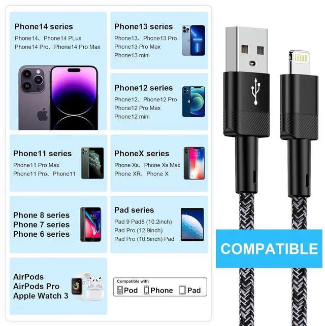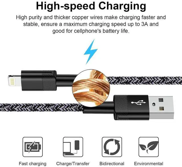 The charging cord can withstand over 20,000 bends and supports high-speed data transfer (up to 480Mb/s), offering a durability that is twice as long-lasting as other types of lightening charger cables.