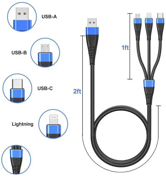 High Quality Material The chargers for multiple devices is designed and made of Nylon Braided material, with a built-in high-purity copper core, intelligent chip, overcharge protection, and stable current protection. The high-quality aluminum casing makes the cable more durable, heat-resistant, and corrosion-resistant. After 20000+ bending tests, it ensures a longer service life.