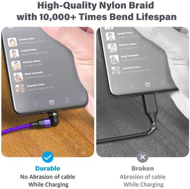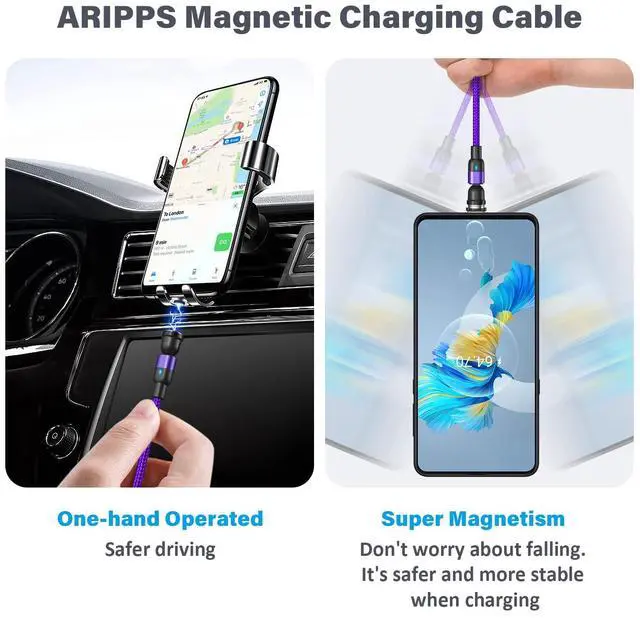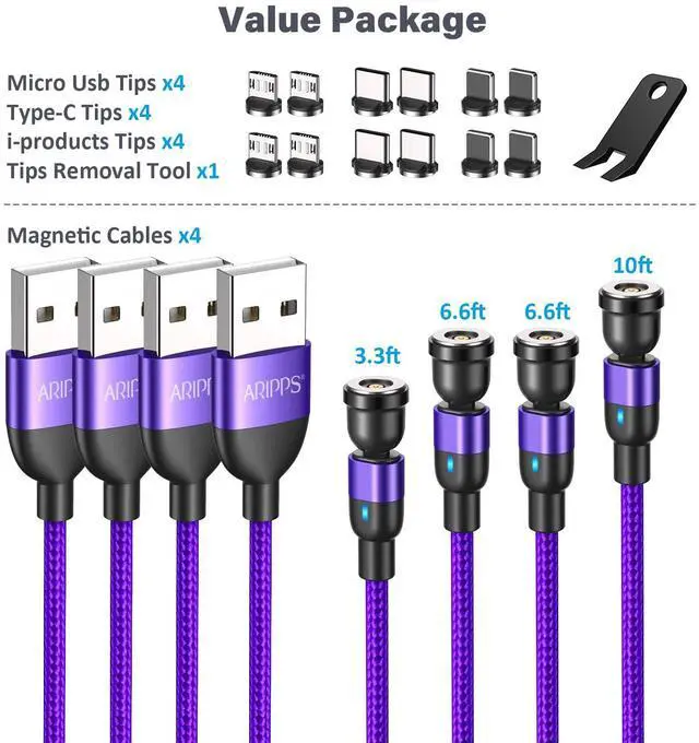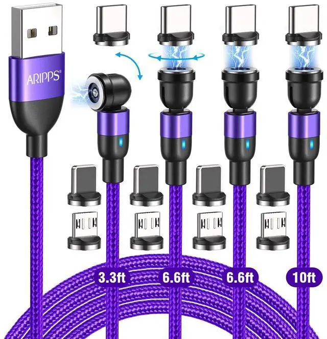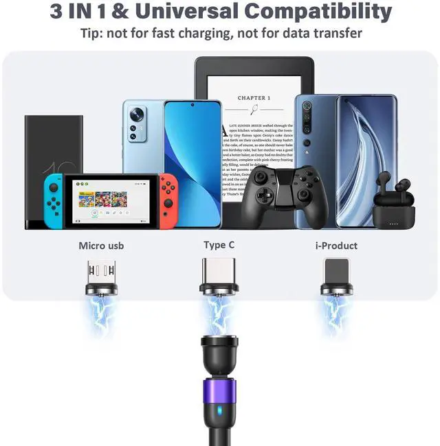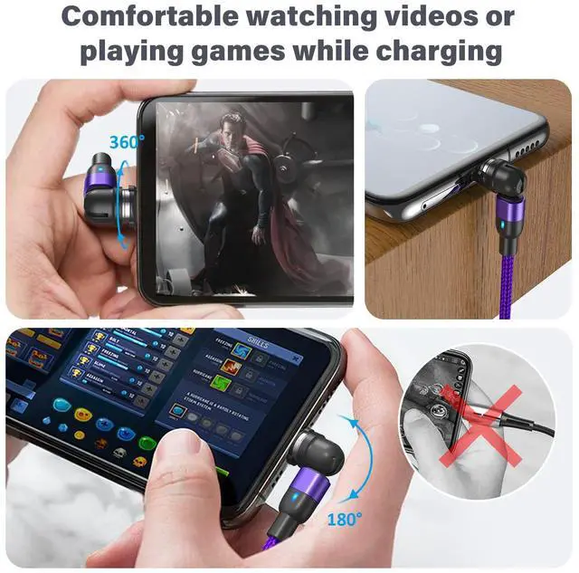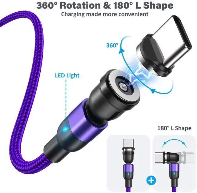 Upgraded 540° Rotation & Led Light Design 180°L shape & 360°rotating magnetic head design, It has all the functions of the straight and 90 degrees L-shaped magnetic cable. It's user-friendly design more convenient and comfortable for playing games, watching videos, reading e-books and online shopping when you charging. LED lights are designed to help you find cables more easily in the dark.