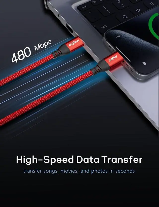 Ultra-High 240W Power Delivery: eyjiew 240 watt usb c cable supports PD 3.1 fast charging for Laptops, Phones, Tablets and switches, no matter what device you want to charge, it can be done more efficiently (Note: Actual charging speed depends on your device and charger block)