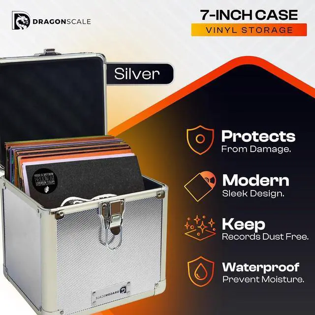 [DURABLE CONSTRUCTION]: Crafted with a tough aluminum exterior, this vinyl record storage box protects your 7" records from dust, moisture, and accidental damagekeeping your vinyls safe and in top condition
