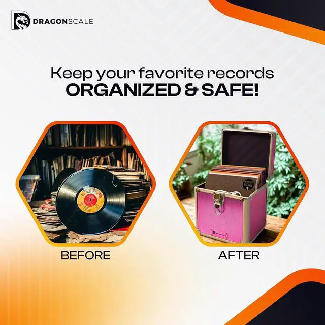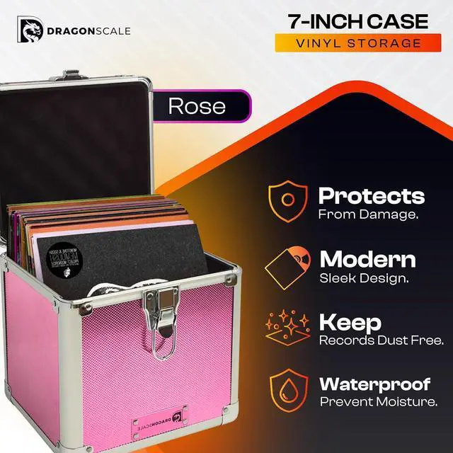 [DURABLE CONSTRUCTION]: Crafted with a tough aluminum exterior, this vinyl record storage box protects your 7" records from dust, moisture, and accidental damagekeeping your vinyls safe and in top condition