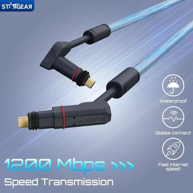 Higher Data Transmission Speed: STARGEAR for Starlink V2 cable data transfer speed up to 1200Mbps, made of quality 24AWG single-core copper with metal shielded layer for both indoor and outdoor stable network supply, provides streaming without lag for server applications and online high-definition video streaming etc.