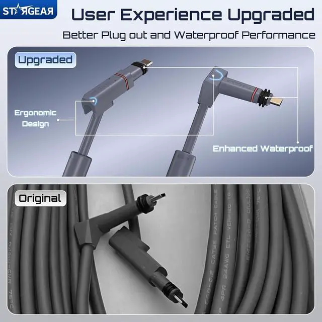 Reduce 50% Contact Resistance: STARGEAR Cable for Starlink replacement with patented advanced soldering-type RJ45 connectors reduces contact resistance by 50%, providing the highest fidelity for long-distance data transmission and a stable power supply for Starlink gen3 dish without voltage drop.