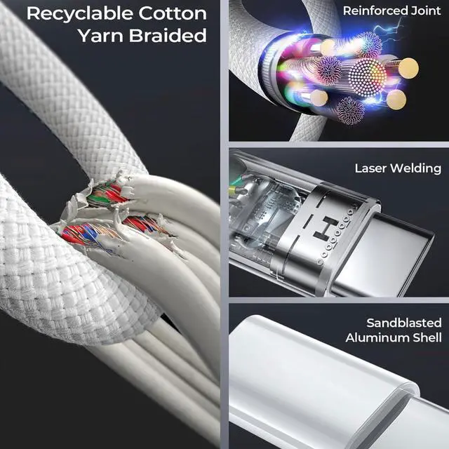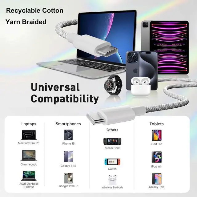 Featuring a White braided design that coils without tangling, this 1-meter cable supports Phones, IPads and headsets with USB C port.