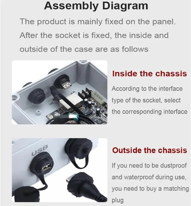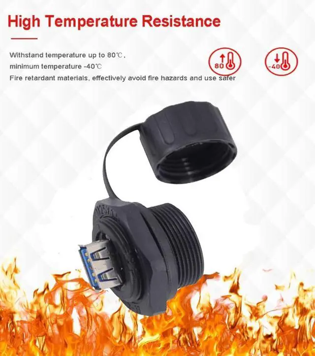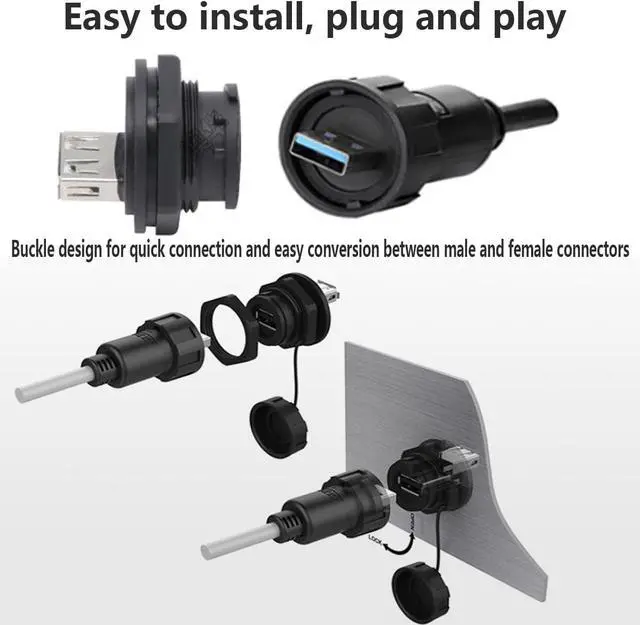 Multi-purposeWaterproof USB3.0 panel mount coupler set ,this product can be configured in a variety of ways according to the environment or needs in which the connector and equipment work.The USB female to female connector can be used separately for panel installation, and the male to male usb plug can be used as an extension cable, effectively solving the problem of your USB cable being too short. In addition, you can also use the male and female heads together, which will connect very tightly and have strong waterproof performance.