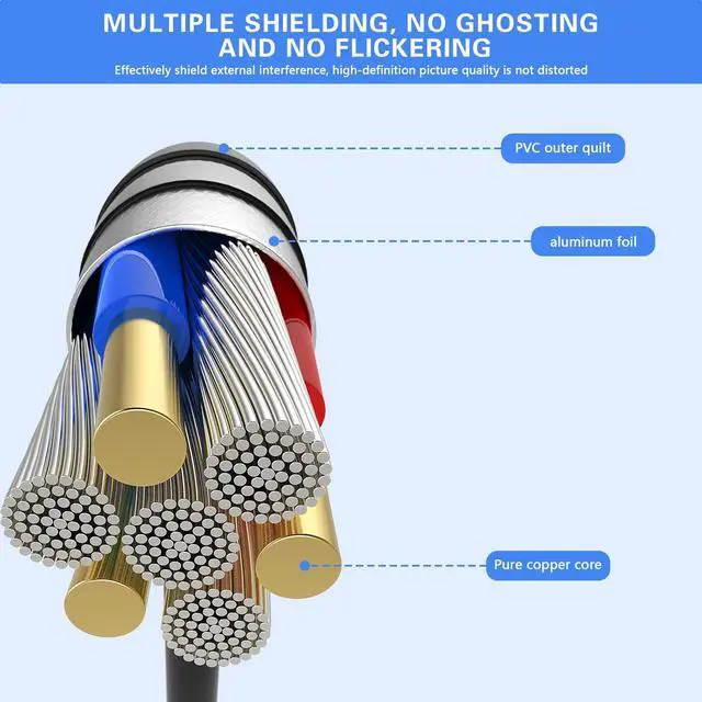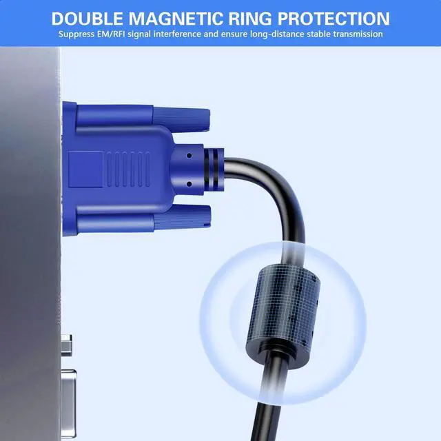 Foil & braid shielding and integrated dual ferrite cores on the VGA male to male PC cable minimize crosstalk, suppress noise, and protect against electromagnetic interference (EMI) and radio frequency interference (RFI)