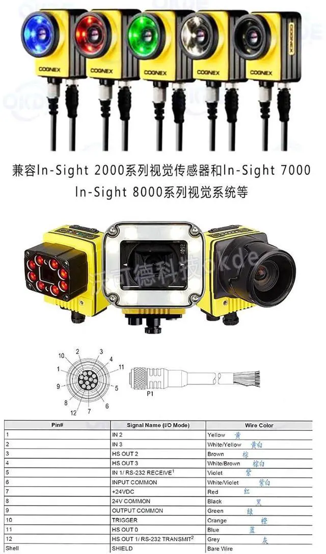 24V power IO cable for Cognex In-Sight 2000 7000 9000 2800 3800 7000Gen2 D900 / Checker 201 202 4G / DataMan 260 280 300 360 380 370 470 580 series vision system camera sensor and reader, part number CCB-PWRIO-01