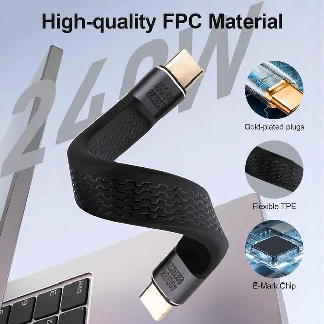 High-Quality Cable MaterialThis USB 4.0 Type C data cable is made of high-quality FPC soft flat cable material. The cable body is soft, easy to bend, and durable. The cord length is only 5 inches (13cm) and can be carried anywhere. Ideal for power banks or cars, etc., easy and hassle-free, no need to deal with the messy tangles caused by long cords.