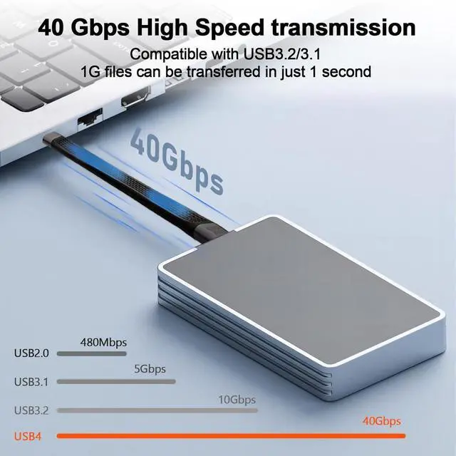 High-speed data transfer and fast chargingSupports ultra-high transfer rates up to 40Gbps, USB4 Type-C male to female is compatible with USB3.2/3.1, 1G files can be transferred in just 1 second, no need to wait, experience lightning-fast transfer speeds. 240W high-power fast charging can quickly power your device, providing 70% of the power to your device in just ten minutes.