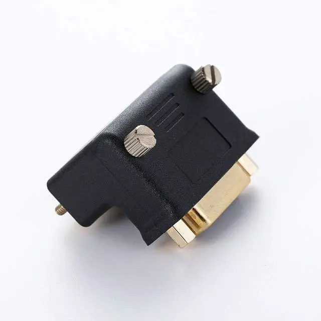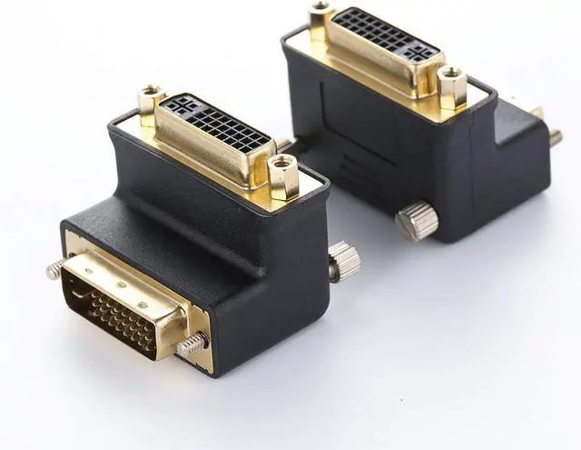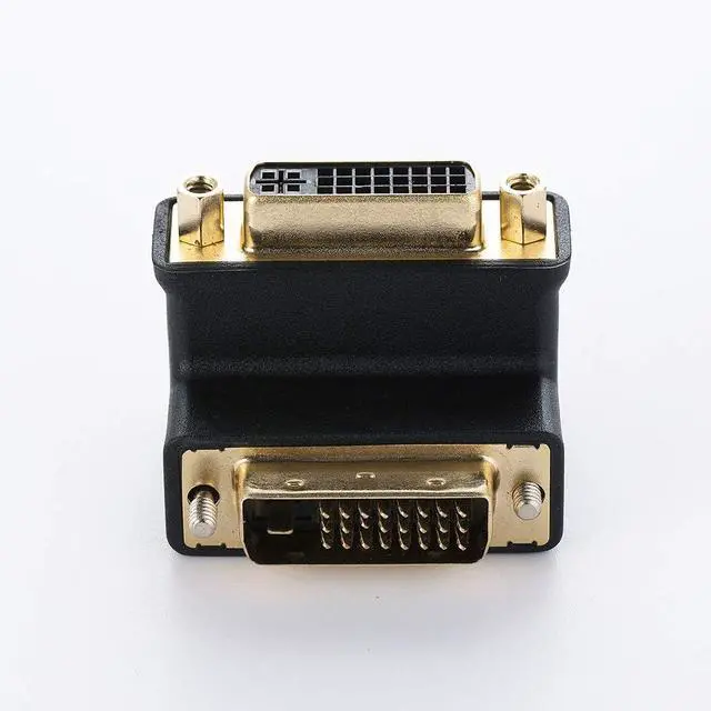 THIS ADAPTER IT'S NOT SUPPORT DVI TO VGA CABLES Allows cables to mate at a 90 degree angle to avoid nearby obstructions Gold contact plating provides reliable connections with repeated mating cycles