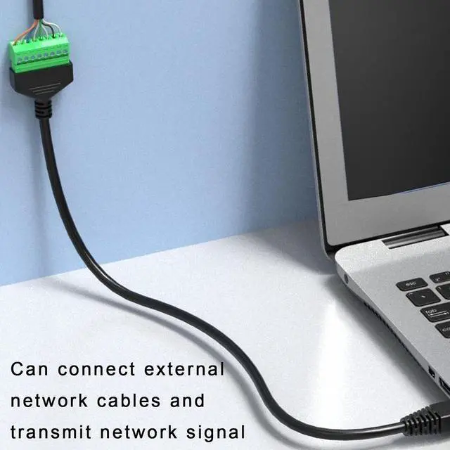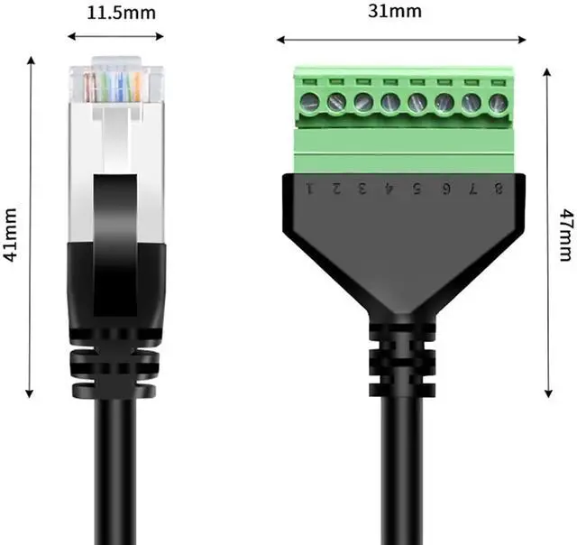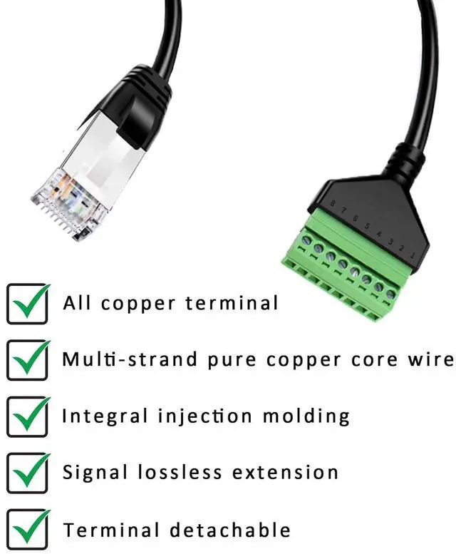 The RJ45 male to 8 pin screw terminal connector works with T568B crimping standard method. Fixed RJ45 interface, 8-core contacts have good contact performance, and the transmission signal is more stable. The compact design can prevent damage and avoid loss of network signal.