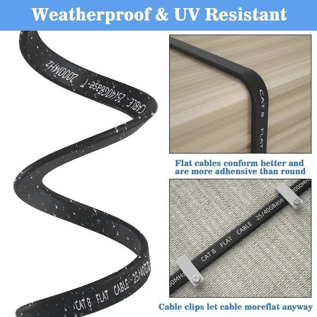 The flat design makes the Ethernet cable more flexible during installation. It can pass through various complex environments such as wall corners, carpets, door seams, and windows. If you don't need the entire length, you can easily curl it into a loop without occupying space. Keep the room and usage area clean and tidy.