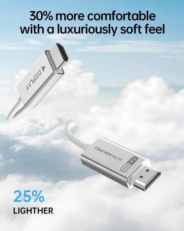 Sleek White Design, Discreet & AdaptiveUltra-thin white fiber optic HDMI 2.1 cable effortlessly blends into any decorhide it along baseboards, under rugs, or behind walls. Matte finish resists dust, while tiny connectors stay invisible behind TVs.