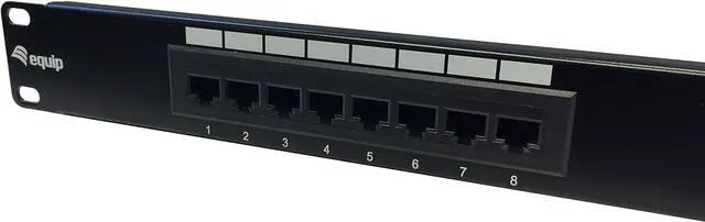 The Equip Patch Panel is a 19" 1U network distribution unit integrating cable management system for better routing and strain relief requirements, suitable for both LSA and 110 standards. Featuring 16 x RJ45 ports, this patch panel is recommended to connect with Equip patch cords and cabling accessories to achieve outstanding performance. Each port is marked with port number for recognition.