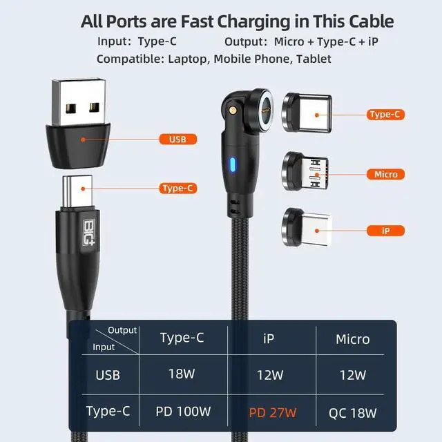 STRONG NYLON BRAIDED CABLE - The 6 in 1 Magnetic Type-C Cable are well made with smooth braided Nylon that protects the wires core. Tested with 30,000+ bend lifespan, our cables are extremely durable and strong. The BIG+ cables are also tangle free and flexible for your convenience