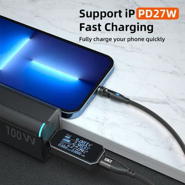 ONE HAND OPERATION - Automatic adsorption with double magnetic force, more stable to connect and not easy to fall off when charging. The subtle LED light design will assist find the cable in the dark, and not too strong to disturb your sleep