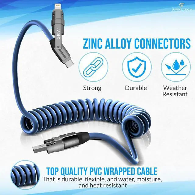 The JURNETECH universal charging cable is your ultimate all-in-one solution for fast and reliable charging on the go. With 6 versatile connectors, including Type-C to Type-C, USB to Type-C, Lightning, and Micro-USB, this cable ensures compatibility with nearly all devices. Offering power delivery of up to 100W for Type-C connections and 40W Quick Charge for USB, it guarantees rapid charging for smartphones, tablets, laptops, and more. Designed for convenience, the multi cable charging cord features an adjustable length allowing you to customize its reach as needed. Constructed with high-quality Zinc Alloy connectors and a durable PU cable, it is built to withstand wear and tear, providing long-lasting durability. Available in sleek Black, the usb to multiple connectors cable is not only practical but also stylish. Whether you're a frequent traveler or an Uber driver. Its compact, tangle-free design makes it easy to carry in your bag or car, ensuring you're always ready to power up your devices quickly and safely, all while enjoying the peace of mind that comes with built-in safety features like overcurrent and short circuit protection.