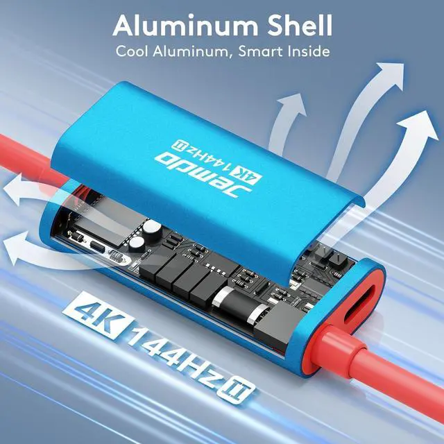 Triple-Shielded & Cool-Running Durability: Foil + metal-mesh EMI layers protect seven-strand tinned-copper cores against interference, ensuring stable 4K@144Hz transmission without lag or dropouts. The aluminum heat-sink shell disperses heat efficiently, keeping the cable cooler and extending lifespan. Gold-plated HDMI 2.1 and USB C 3.2 connectors resist oxidation, endure 10,000+ bends, and maintain rock-solid signal quality built tough for marathon gaming sessions.