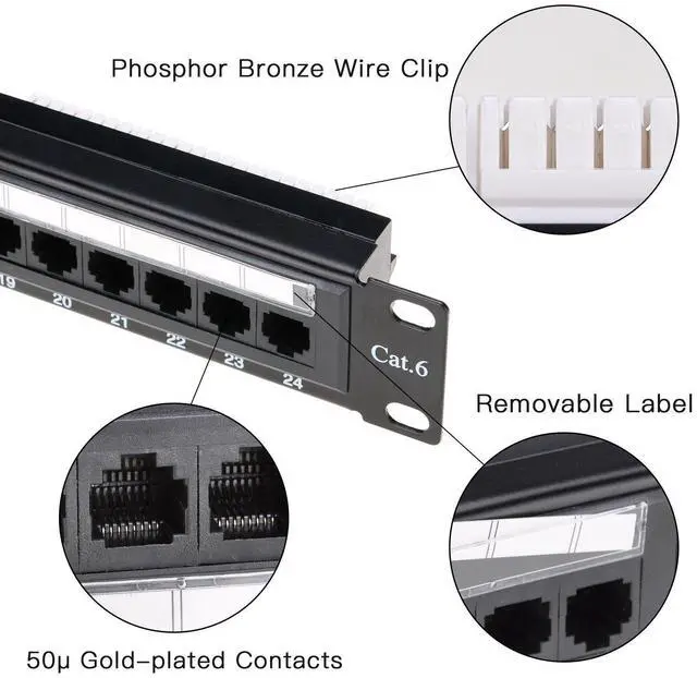 Rugged & Professional Construction - Constructed with SPCC steel, phosphor bronze wire clip, gold-plated contacts, stamped port numbers, rear cable management bar and writable label spaces, the patch panel enables quickly change port assignment and will maximize network performance.