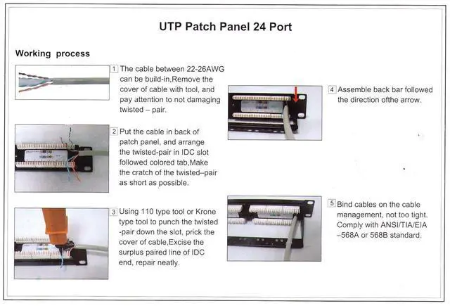 Ideal Solution for Network Cabling - Support Cat6 22-26AWG cables; support 10 Gigabit Ethernet transport; support T568 A&B wiring; compatible with 110 or Krone tools; meet meets 19" rackmount standards. The panel is