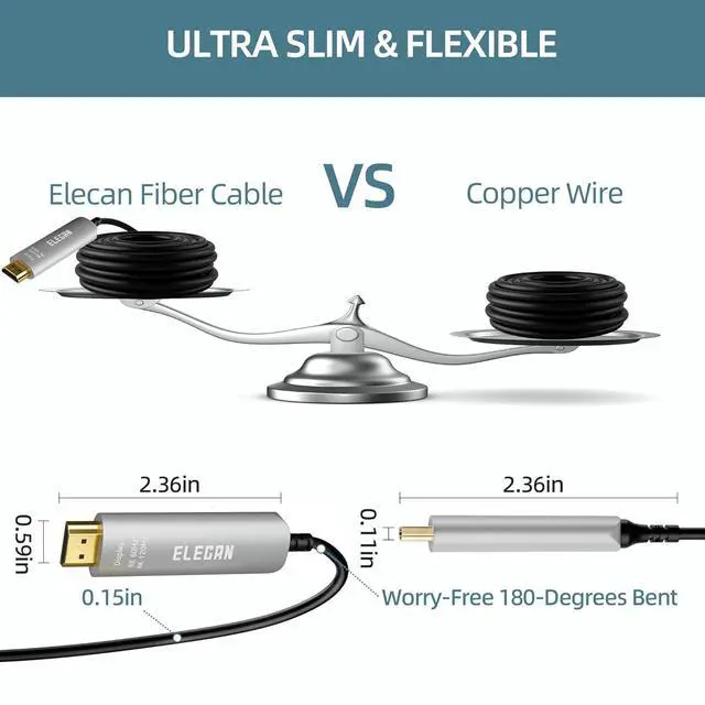 Wide Compatibility And Mirror & Extended Mode: Elecan Fiber Optic DisplayPort to HDMI Male to Male Cable connects a computer with a DisplayPort (DP, DisplayPort + +, DP + +) port to a device with an HDMI port,such as a monitor,projector,HDTV,VR headset.Compatible with pc, graphic card, GPU of MacBook,Microsoft Surface Pro,Dell, HP, Alienware&.Configuring the monitor to mirror mode to watch movies on a big screen or to the extended mode to work and play at the same time with 2 screens.