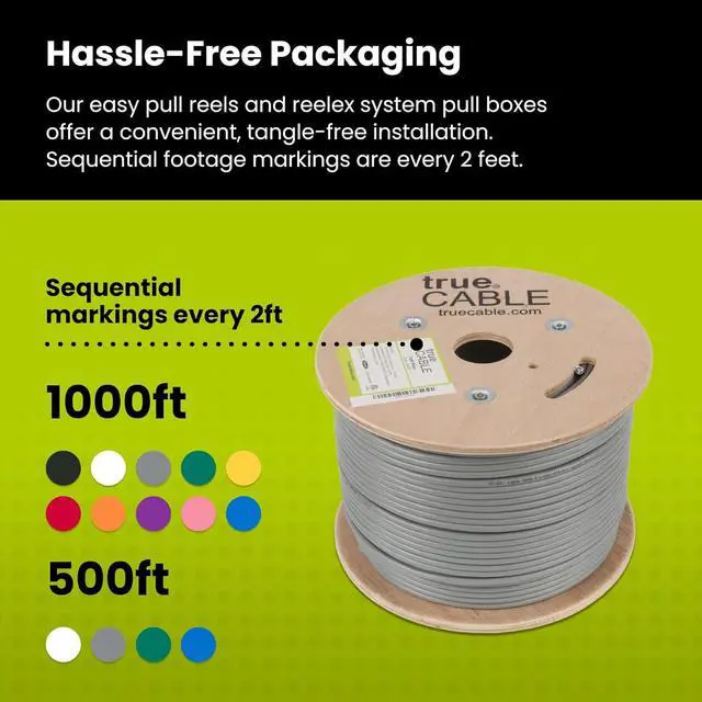 [Hassle Free Packaging] 500 feet (152 meters) comes conveniently pre-spooled on a tangle free, easy pull reel so you dont have to worry about getting behind on your next job.