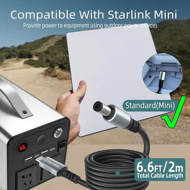 Compatible with Starlink Mini: This USB-C to DC power cable is designed to replace the original Starlink Mini charging cable, offering a reliable and efficient power supply through USB-C PD (Power Delivery) for enhanced portability and convenience.