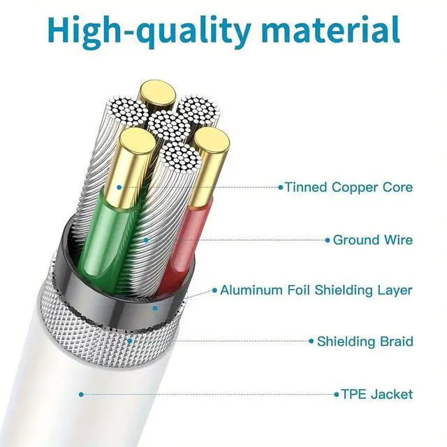 Flexible and Durable TPE MaterialMade with premium TPE material, this cable is highly flexible, durable, and resistant to wear and tear. The soft yet sturdy design ensures it can withstand daily use while maintaining its original shape and performance.