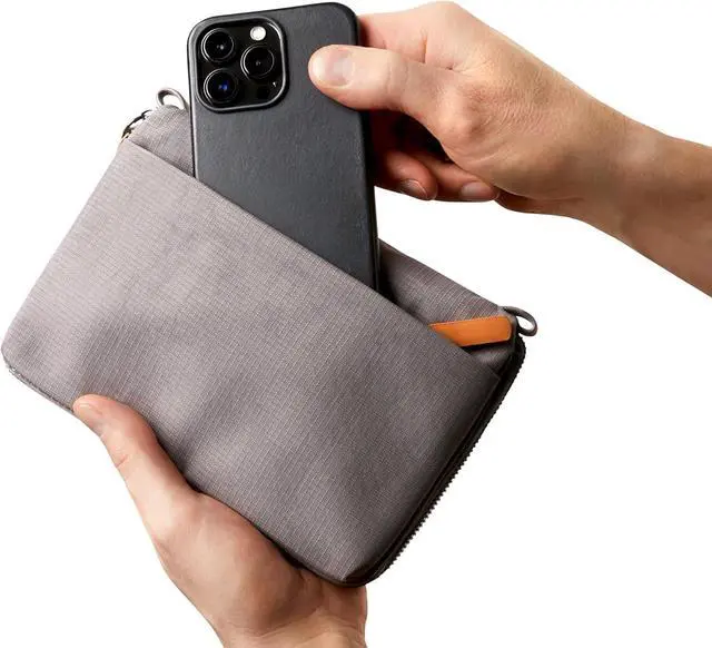 This pouch saves space by compressing around your contents, squishes down when its empty, and slides neatly into the front pocket of many totes and backpacks.