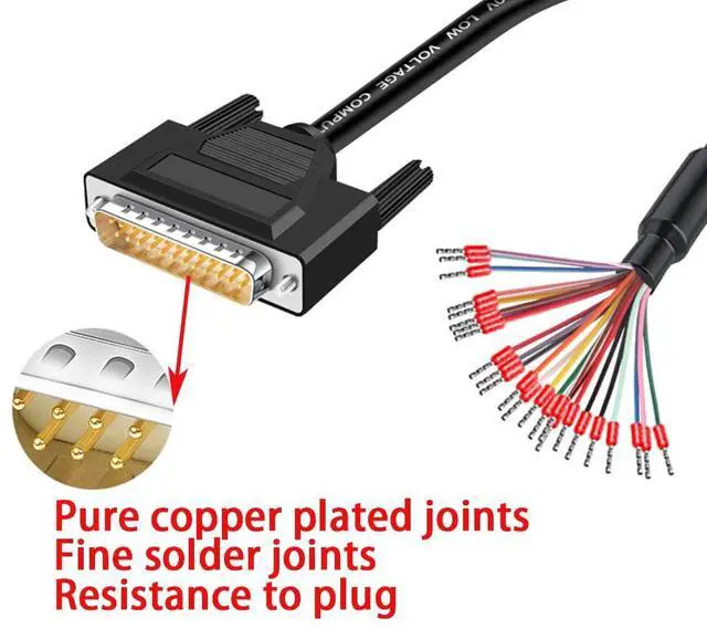 Stable Transmission: This DB25 Solderless Breakout Connector adopts 26AWG double-layer shielded cable and copper crimp terminals, which has stable signal transmission and good shielding effect.