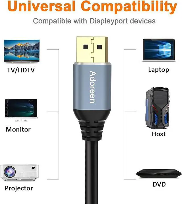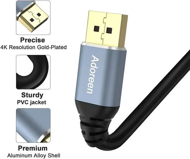 Notice: Not DP to HDMI;Not Mini DisplayportHigh Refresh-Rate: Adoreen DP 1.2 Cable supports UHD 4K (3840x2160@60Hz),2K 1080p Full HD .It also supports uncompressed digital audio channels at 7.1, 5.1 and 2 channel audio formats,Stereoscopic 3D video, Multi-Stream Transport(MST), and sharp images,Snug and secure connection.