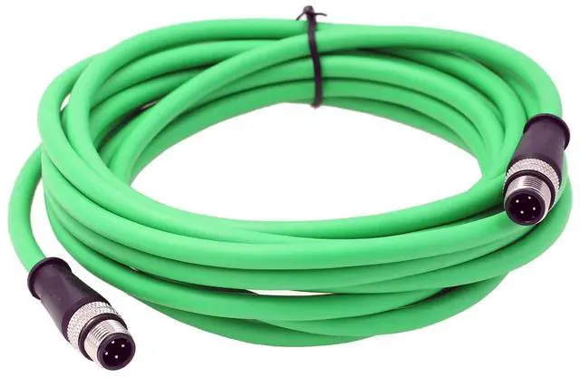 M12 Ethernet cable for Baumer encoder sensor camera, for SICK sensor, for Omron machine vision system, for Datalogic barcode scanner Matrix, for Keyence IV IV2 series sensor / SR-1000 2000 700 750 barcode reader to network communication application PLC, switches, profinet, rated at 30V-250V 4A