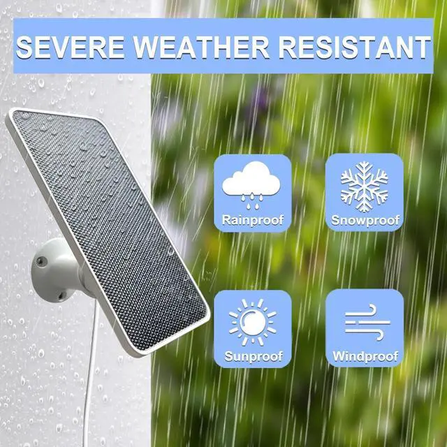 High Efficiency Boasting a monocrystalline silicon surface complemented by lightweight Ethylene-Tetra-Fluoro-Ethylene, our solar panel outperforms others by 10% in conversion efficiency and power output, keeping your security camera charged through sunny and partly cloudy days