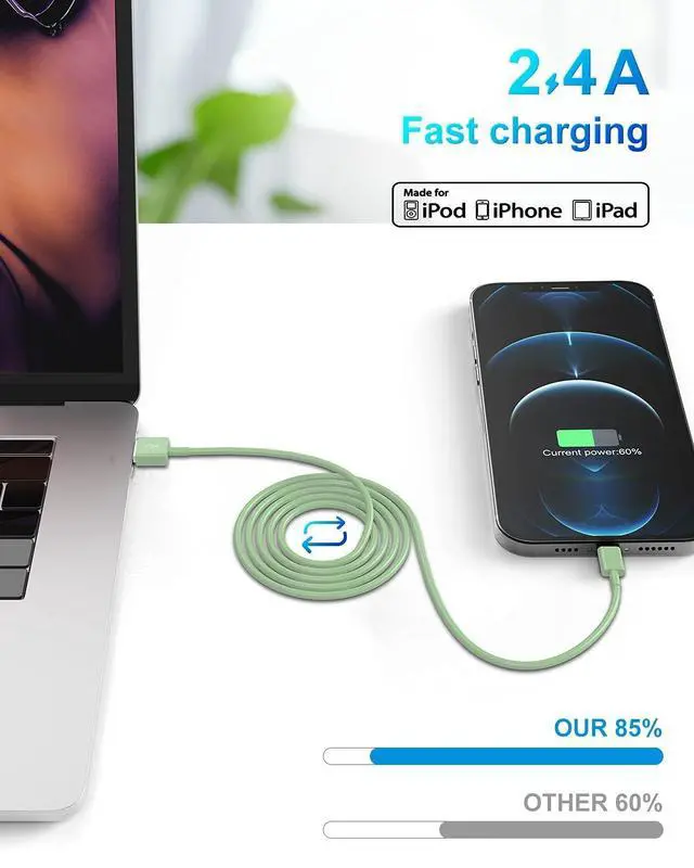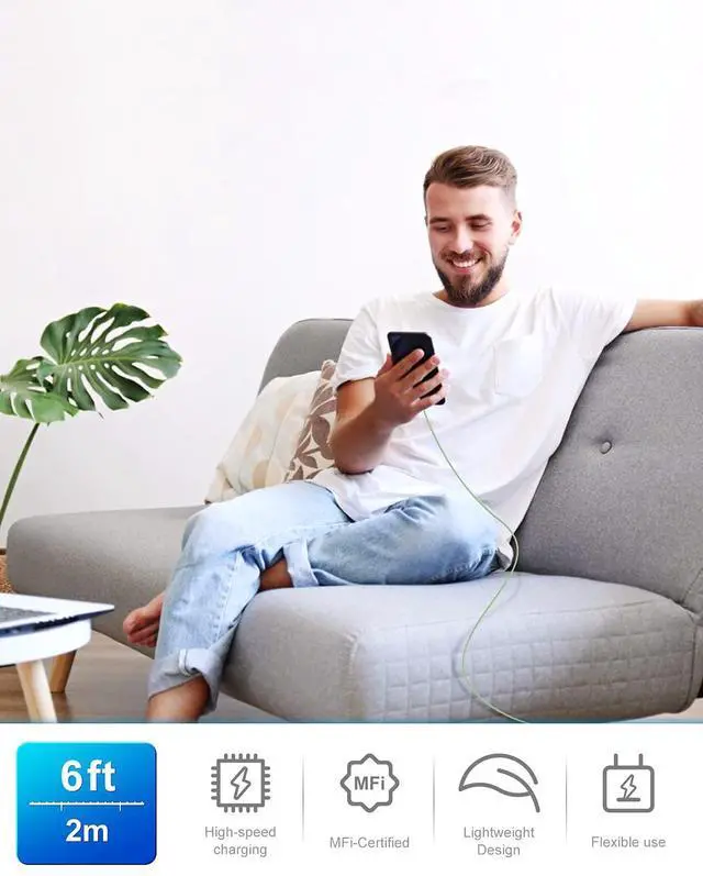 Apple MFi Certified iphone charger Cable The original authorized chip is guaranteed to be compatible with your iPhone. Built-in terminal and smart chip. Original 8 Pin connector with a lightning end, the Apple charging cable connector has a lightning end to ensure safe charging for your device and enjoy fast data transmission and synchronization.