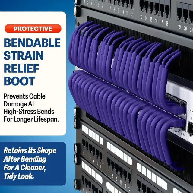 • Bendable Strain Relief - Designed to protect the Cat 6a patch cable at its most critical bending point, our unique bendable boot prevents wear and tear, extending the life of your Cat 6a cable even in tight spaces while making installation a breeze