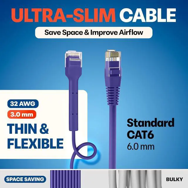 • Ultra-Slim & Space-Saving - With an outer diameter (OD) of just 3mm - slimmer than competitors, our 15 feet cat6a cable fits effortlessly in high-density environments such as racks and cabinets. Save valuable space without sacrificing performance