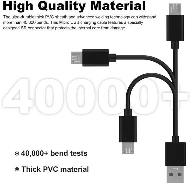 High EfficiencyThe V8 charging used the thickened galvanize copper as the core material which has lower resistance and stable chemical properties, providing you high quality charging
