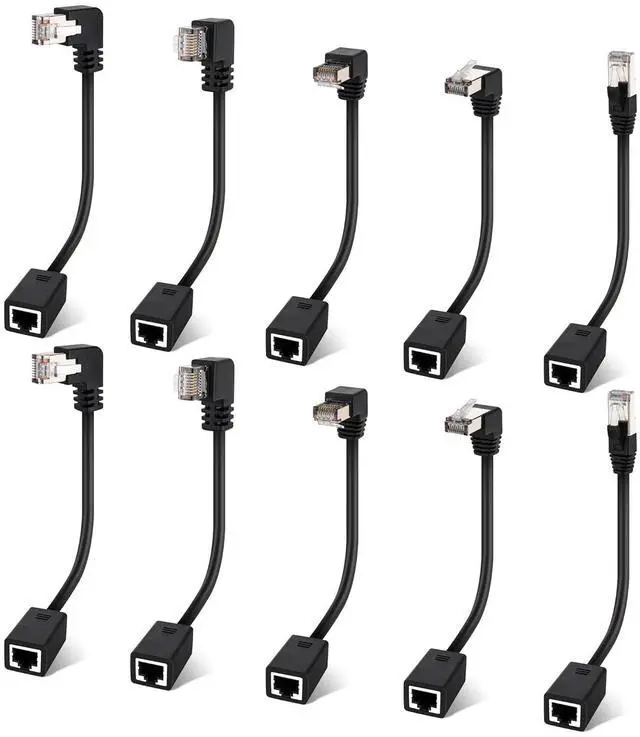 Multi Angle CAT6 Extender ConnectorMulti angle design (UP/Down/Left/Right/Straight) avoids excessive bending of cables in narrow spaces such as walls, furniture, or network cabinets, effectively protecting Ethernet ports from wear and tear.