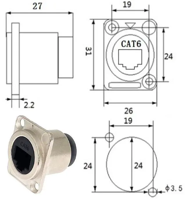 Standard D-Series Connector for Panel-Mount Installations, and save installation space, RJ45 female to female field installable coupler, no soldering, no installation tools, just plug the standard crystal head directly for quick installation.