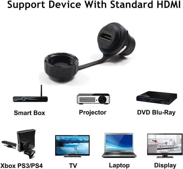 WIDELY APPLICATIONThis HDMI panel mount extender support HDMI signals from devices such as TV Box, Xbox Series, PS5, Blu-Ray Player, PC, TV Stick, Laptop for HDTV, Monitor, Projector and more.