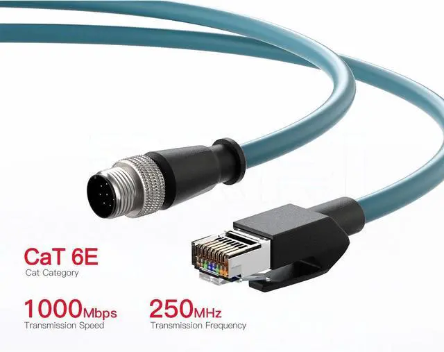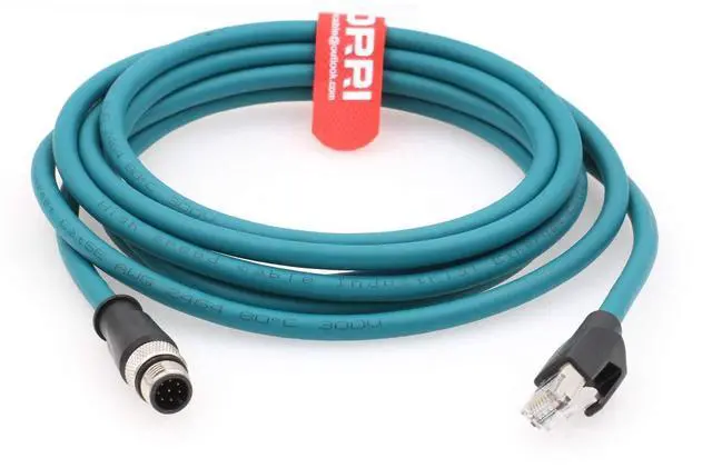 This M12 to RJ45 patch cord is ideal in industrial Ethernet applications such as in machinery, assembly lines and other manufacturing applications where industrial grade cat6 network cable is needed