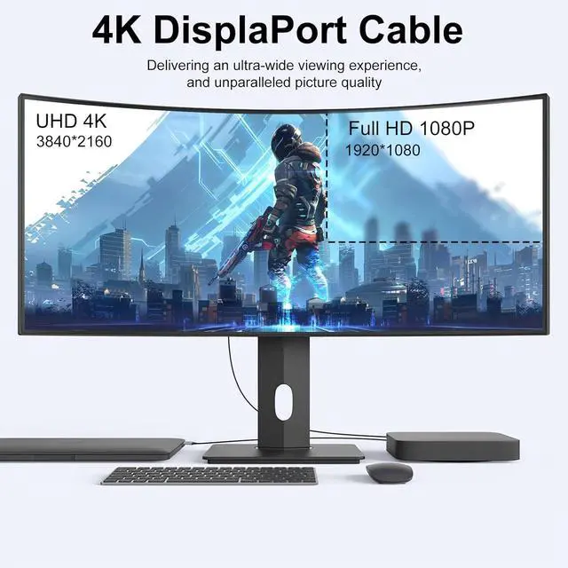 4K DisplayPort CableHigh Speed DisplayPort Cable Supports 4K Video @60Hz, Backward compatible with 2K 1440P@144Hz/@120Hz/@60Hz, Full HD 1080P@120Hz, and HD 720P. Also supports HDR, Audio Return Channel (ARC), Dolby TrueHD 7.1 audio, 3D video. You can enjoy Ultra-high-definition audio-visual experience