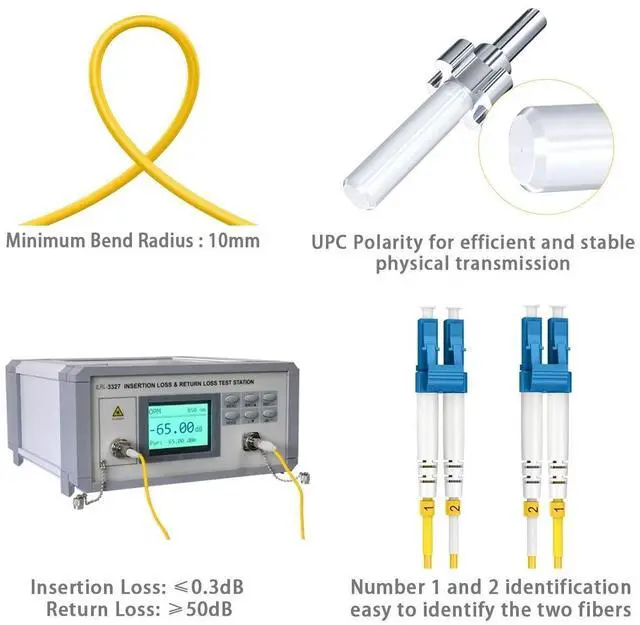 [Industry Standard] OS2 LC-LC Fiber Patch Cord is constructed with LSZH environmentally friendly Jacket. Optimum IL and RL of the Zirconia Ceramic Ferrule ensures stable signal transmission(Accordance with EIA/TIA 604-2, 100% inspected), protecting your network safety. 15mm Minimum Bend Radius improves duct utilization, enabling smaller enclosures.