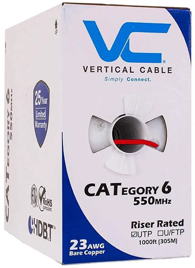Vertical Cable Cat6, 550 MHz, UTP, 23AWG, Solid Bare Copper,1000ft, Bulk Ethernet Cable - 161 Series, Red