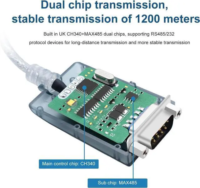 **Advanced Dual Chip Design**: Equipped with CH340 and ZT485 dual chips, this converter supports RS485/232 protocol devices for long-distance transmission up to 1200 meters, ensuring more stable and reliable data transmission.